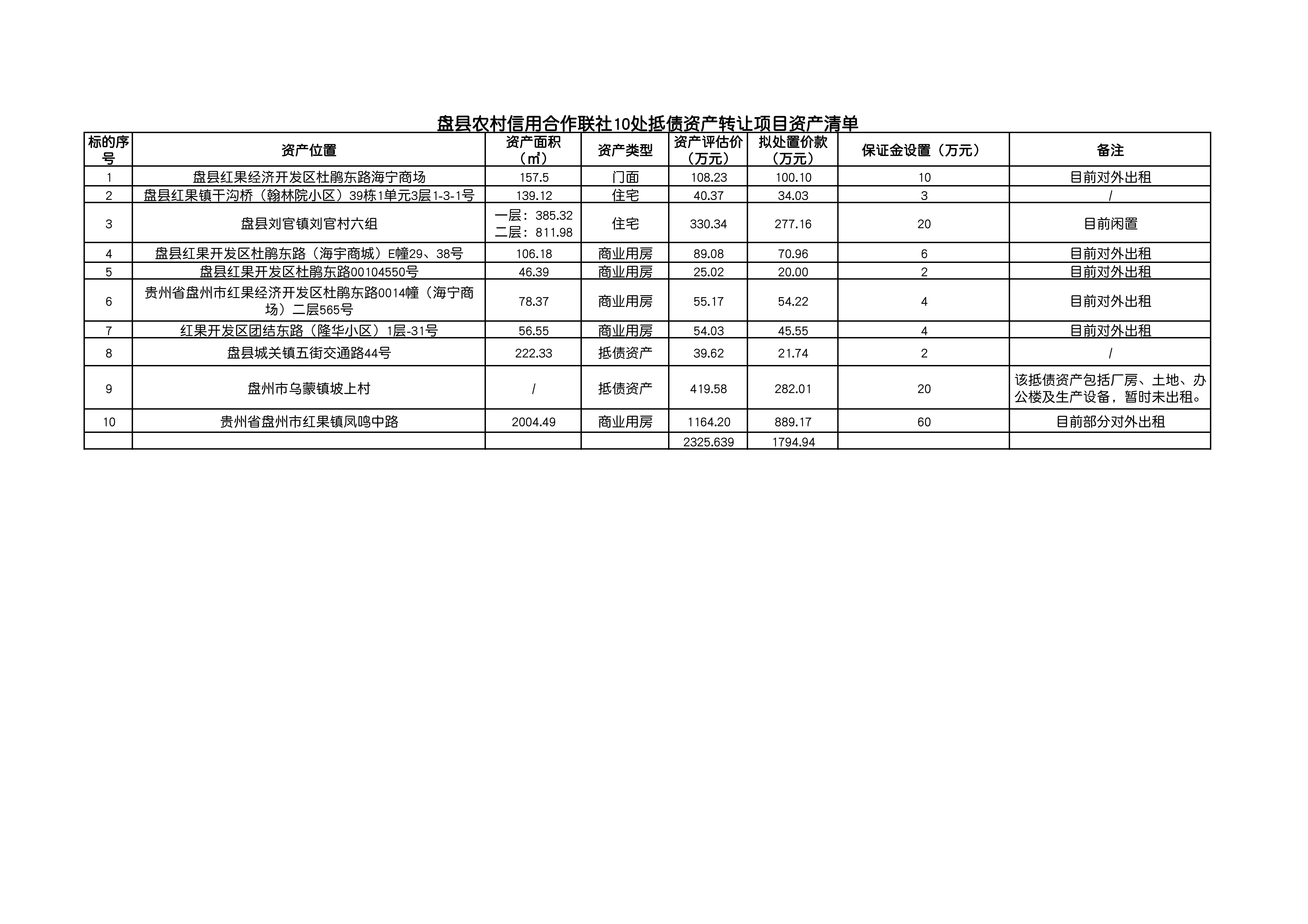 盤縣農村信用合作聯(lián)社10處抵債資產轉讓項目