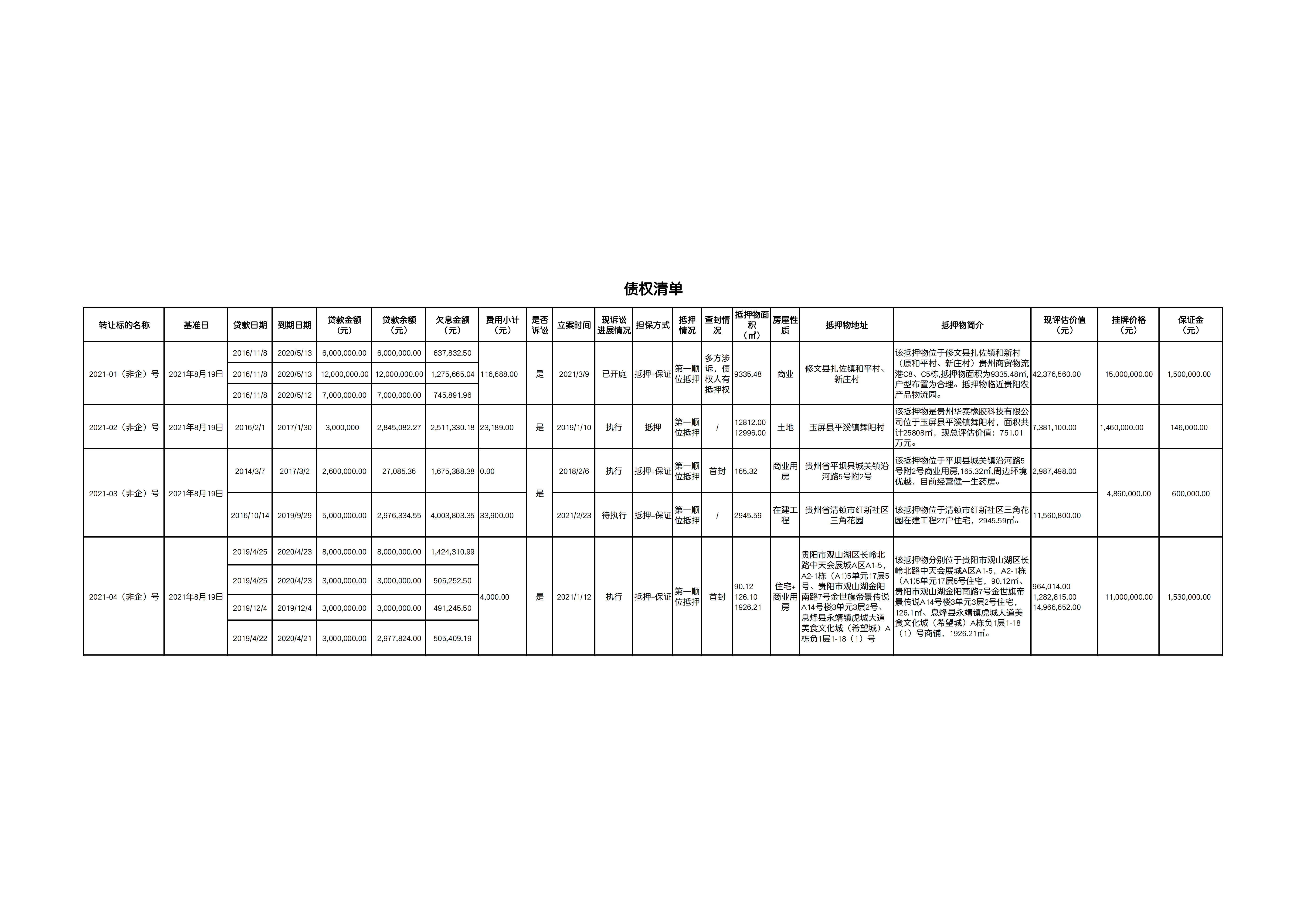 | 標(biāo)的名稱 | 修文農(nóng)商銀行2021-01(非企)號至2021-04(非企)號債權(quán) | |||||||