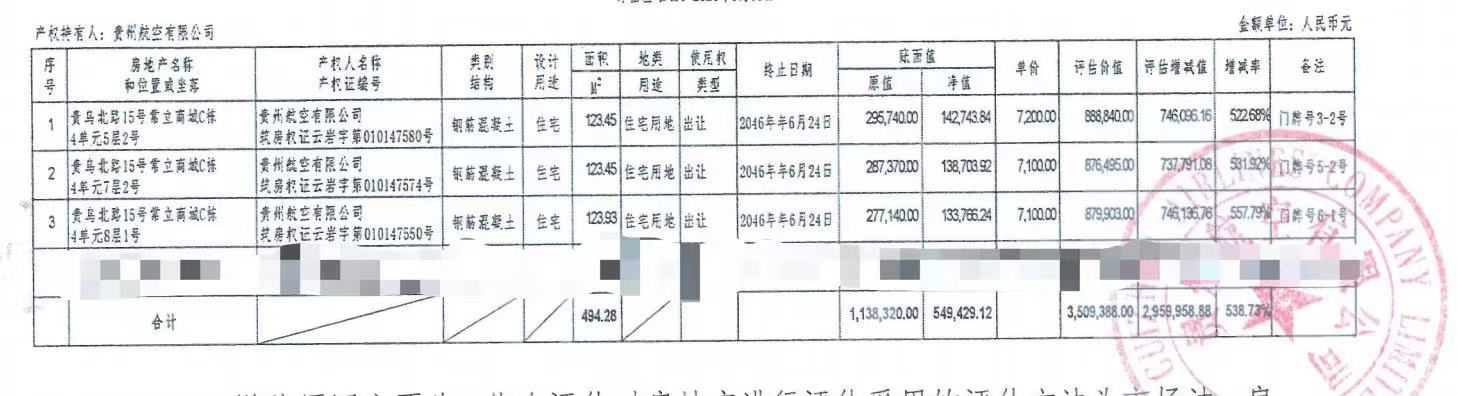| 資產(chǎn)公告信息 | 資產(chǎn)描述 | 本次標(biāo)的為貴州航空有限公司持有的貴州省貴陽(yáng)市貴烏北路15號(hào)常立商城三套住宅: 貴州省貴陽(yáng)市貴烏北路15號(hào)常立商城4單元5層2號(hào),建筑面積123.45(㎡),總價(jià)888840(元); 貴州省貴陽(yáng)市貴烏北路15號(hào)常立商城4單元7層2號(hào),建筑面積123.45(㎡),總價(jià)876495(元); 貴州省貴陽(yáng)市貴烏北路15號(hào)常立商城4單元8層1號(hào),建筑面積123.93(㎡),總價(jià)879903(元); | |||||